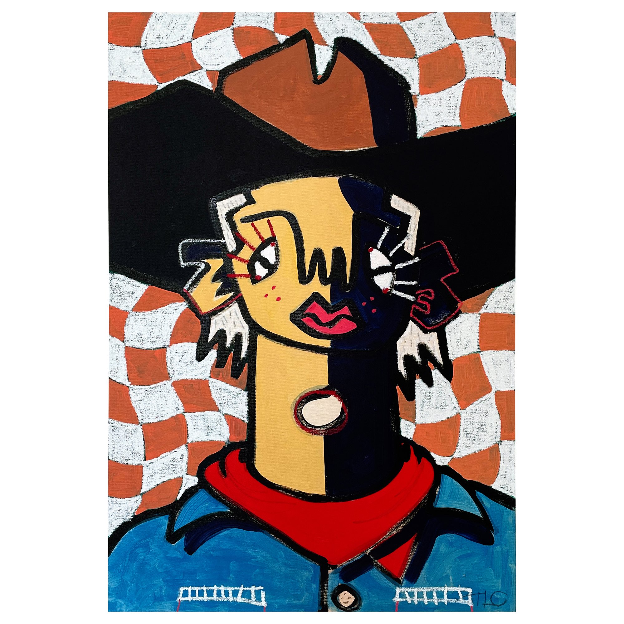 Orange Checker Cowboy Print
